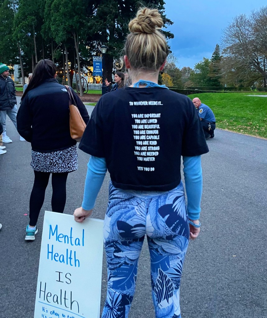 Photo from a Mental Health Awareness Walk at Salve Regina University sponsored by the psychology club in November! I was happy to be in attendance and call awareness to an imperative issue on college campuses.
